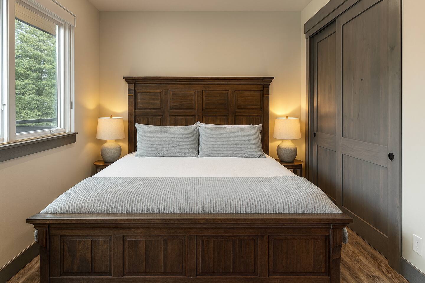 Despite its small size, 2 people are quite comfortable. The mattress on the bed was a Posturepedic mattress and was quite comfortable. And the surroundings were amazing. You can see Engineer Mountain from the patio, and it was a fantastic view.